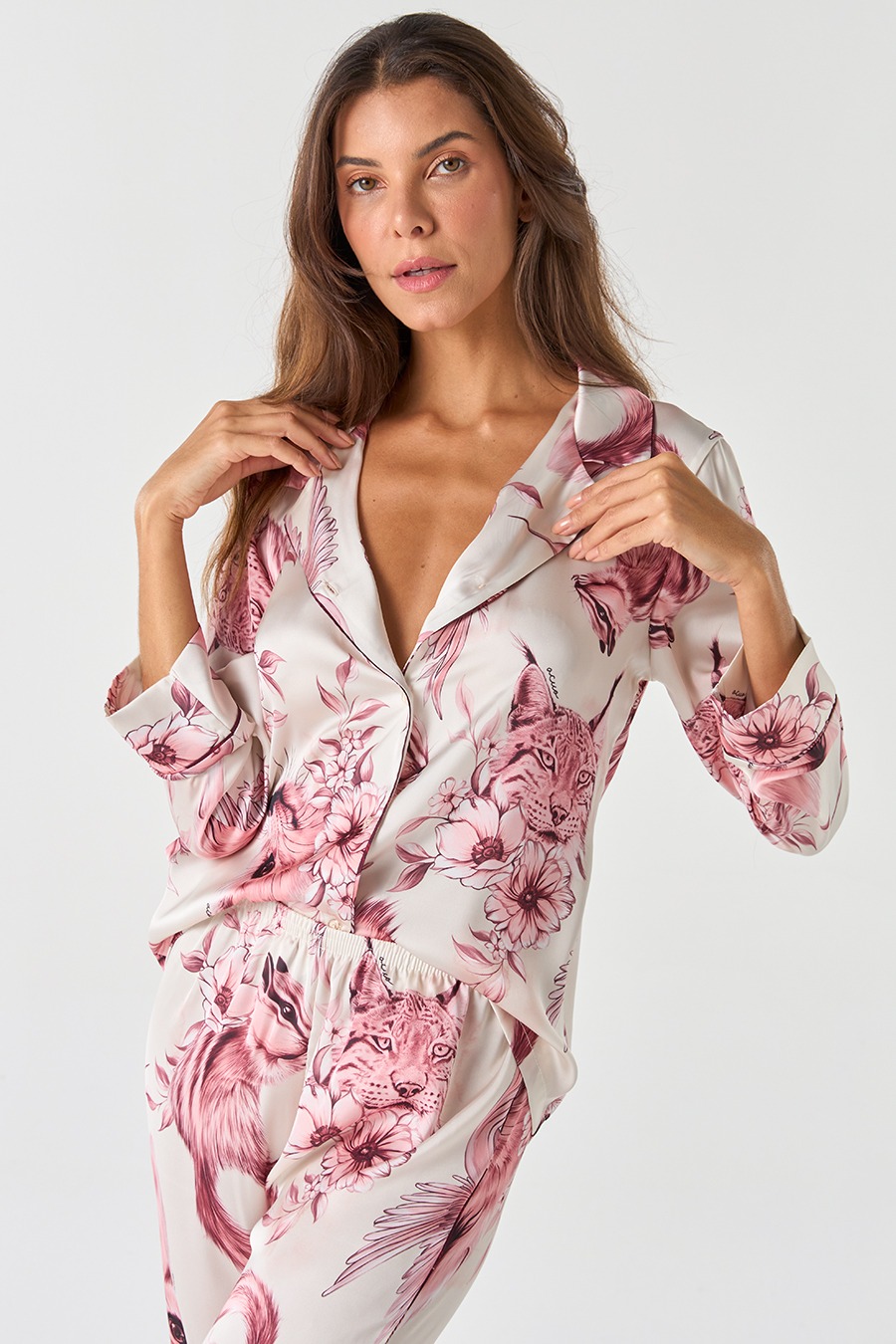 Experimente a sofisticação com o Pijama Americano Longo Amarena. Com tecido acetinado, ele une conforto e funcionalidade para mulheres que valorizam cada detalhe.